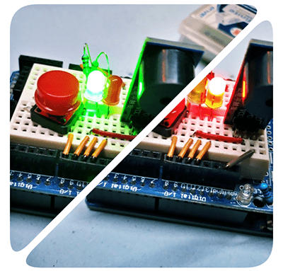 To get started, first power up your setup with the 9V battery and then press the trigger button. The green LED will light up instantly and the buzzer will start beeping (at an increasing gait) for a certain amount of time. Finally, the red LED takes over the green LED and the D13 output becomes “HIGH” for a while. This will ignite the bomb fuse wired into the setup without much delay.
