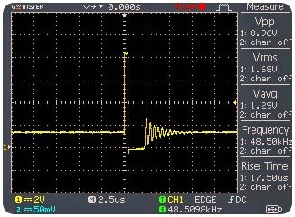 If you’re lucky enough to have one oscilloscope handy, then do probing your LM2596S module to test its switching frequency. Probably you’ll get a shocking readout close to 50kHz from pin 2 of the LM2596S IC!
