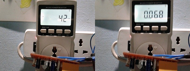 For the most part the prototype draws around 42mA of current from the AC230V/50Hz grid. The observed power factor of the prototype is around 0.068, therefore, so it will register a power consumption of 0.7W (700mW) only (or near to that). Even though it has a very bad power factor, as device operates with a ‘waving’ current that’s extremely low it doesn’t leave much more room for furious debates, we think. As you might noticed, power factor in an ac circuit is the ratio of the true power that is used to do the work and the apparent power that is supplied to the circuit. For more about Power Factor facts, refer https://www.rapidtables.com/electric/Power_Factor.html.